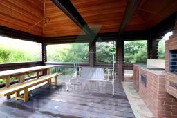 Комплекс, расположенный на участке 20 соток, включает: двухэтажный коттедж с 4 спальнями, банный комплекс с гостевыми апартаментами, просторную беседку с мангальной зоной и гараж на 2 автомобиля со смотровой ямой и столярной мастерской.