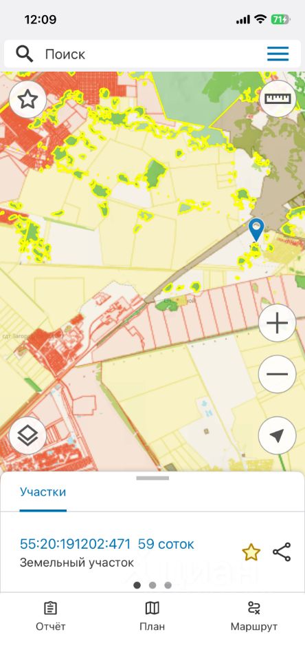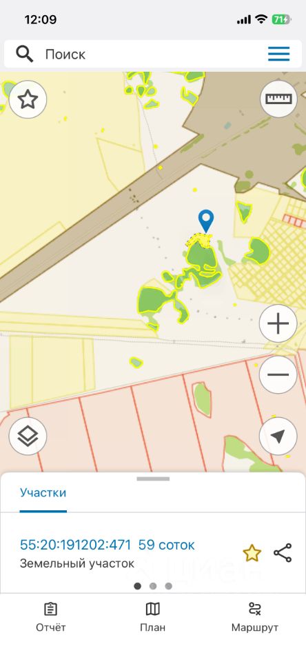 Участок около леса. Относится к Пушкинскому поселению, фактически развилка на село Андреевку (она направо), а к этому участку - прямо, надо смотреть по кадастровому номеру 55:20:191202:471. Документы готовы. Возможен обмен на дачу, гараж, квартиру, автомобиль.