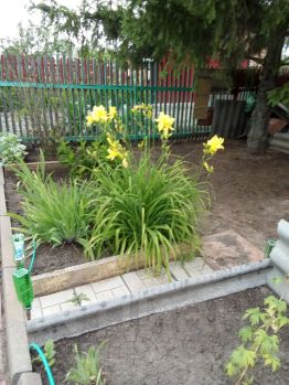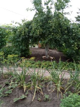 Кусты: смородина чёрная — 3 шт., красная — 3 шт., белая — 1 шт., крыжовник — 3 шт. (плоды крупные), черноплодная рябина — 1 шт., орешник — 1 шт., малина, виктория (3 грядки).