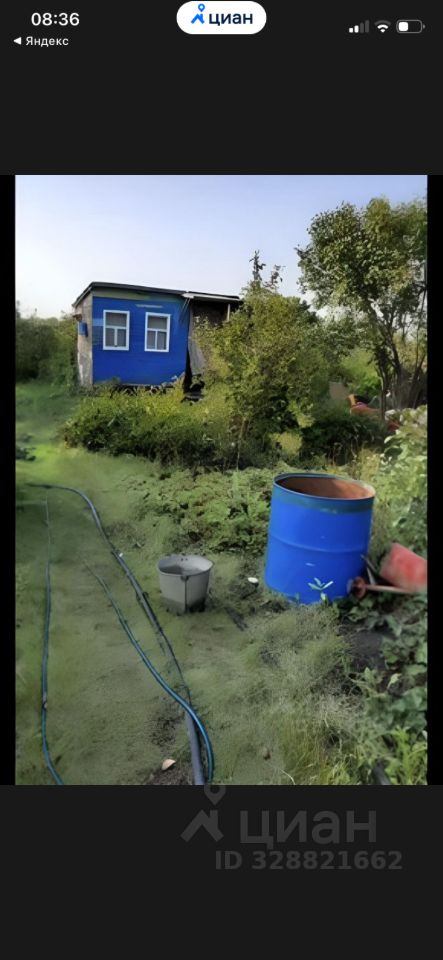 Домик щитовой . Из посадок 4 яблони, вишня, крыжовник , черноплодка. Хорошее место расположение , рядом конечная остановка автобуса . Есть возможность провести электричество , вода по расписанию