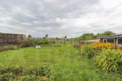Земельный участок отличается ухоженным садом с плодовыми деревьями и кустарниками: груши, сливы, вишни, яблони, малина, смородина, крыжовник и клубника. Система полива упрощает уход — по всей территории расставлены емкости с водой. Для отдыха оборудована мангальная зона с беседкой, есть место для установки бассейна, батута или детских качелей.